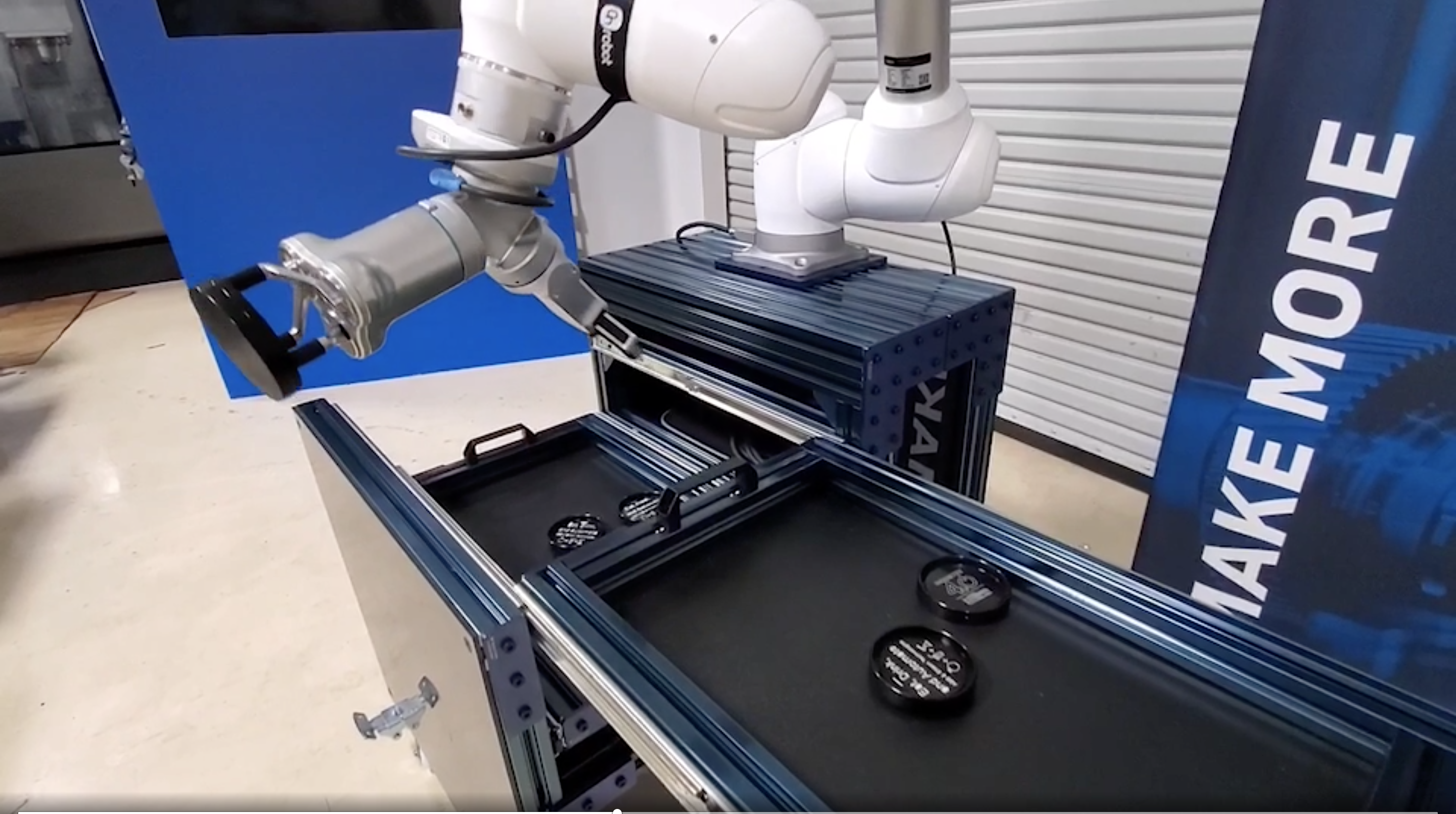 수납식 카트를 통해 작업대 간의 부품을 운반하고 기존의 금속 절삭공정에 사용되던 가공기계의 부품을 투입하고 로봇의 활용도를 성공적으로 높였습니다.