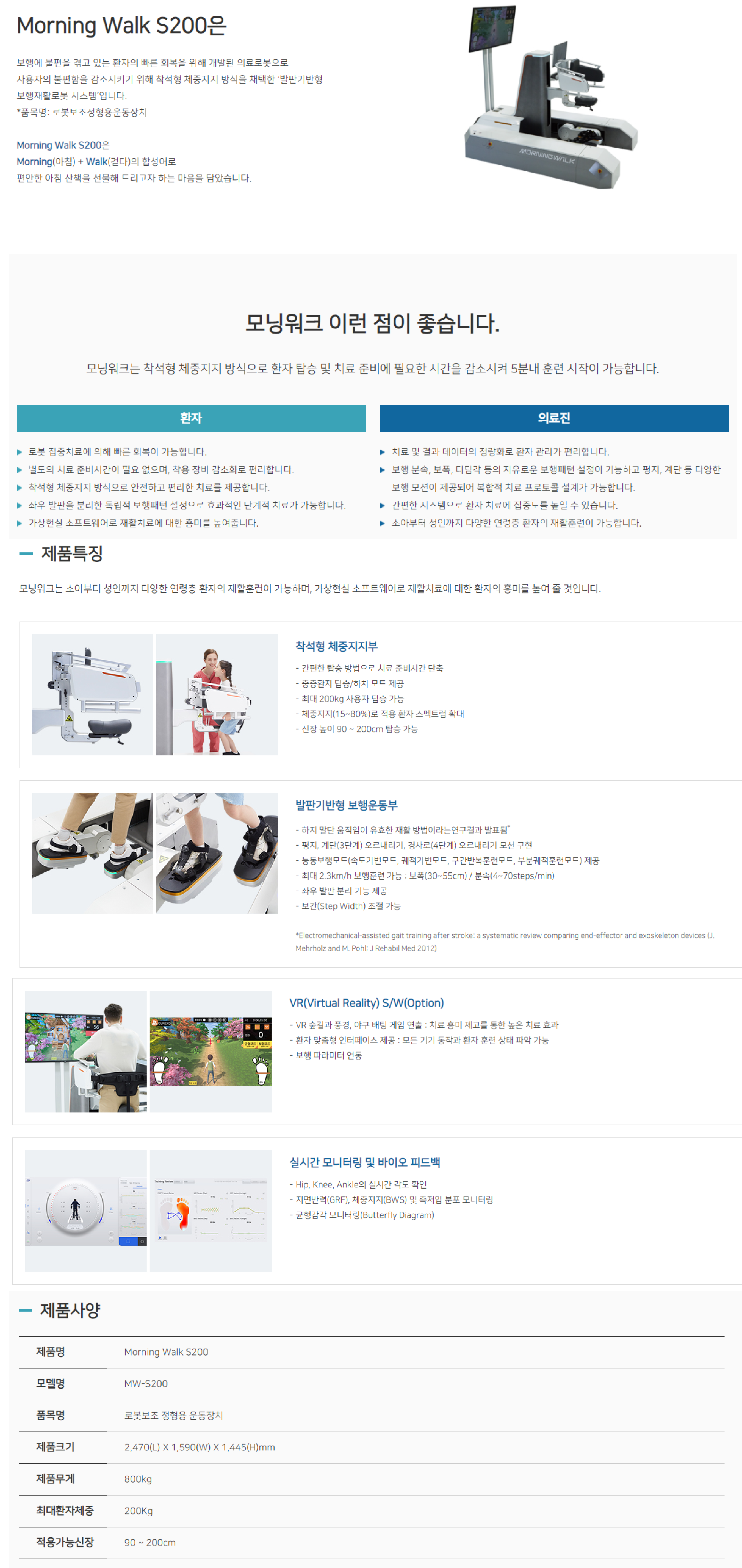 | 상품명(모델명) | 큐렉소 의료용 로봇 Morning Walk S200 | ||